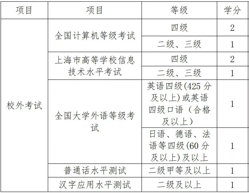 3.学生自行安排本专业培养方案以外的实习实践活动,并连续参加2周以上,提供所在二级学院开具的实习认定证明,可获得1学分的素质拓展学分,绩点为4.0,此类别至多认定1个素质拓展学分。学院认定学生自行安排的实习实践活动的条件包括:学院备案、学生提交经查重后的实习报告(不少于3000字)、实习单位对学生的实习评价或证明。