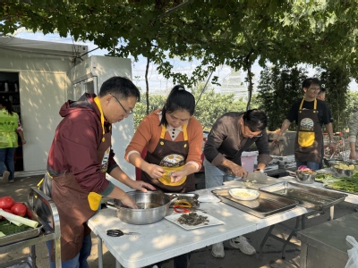 根据活动安排,本次秋游围绕“土灶烹饪”“田间采摘”“趣味射箭”三大特色环节展开,既有烟火气的协作,也有亲近自然的惬意,更有互动竞技的欢乐。“土灶烹饪”环节,学院老师们迅速分工,当一道道热气腾腾的家常菜端上桌,大家围坐在一起分享劳动成果,畅谈工作与生活,简单的饭菜因共同的参与变得格外香甜,也让老师们在协作中感受到了轨道学院大家庭的温暖。