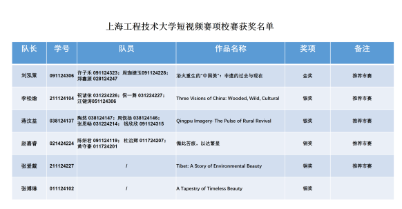 2025年“外研社·国才杯”“理解当代中国”全国大学生外语能力大赛短视频赛校赛已于近日落下帷幕。参赛选手围绕比赛主题“美丽中国”制作原创短视频,经过校赛评委评审,共评选出金奖(一等奖)1项、银奖(二等奖)2项,铜奖(三等奖)3项。现将获奖名单公布如下: