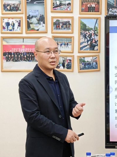 随后,吉志军总经理以“从实验室到产业的‘双创实践’”为主题展开精彩演讲。基于多年服务科技企业、推动科技成果转化与企业发展的实践经验,他围绕“产学研协同创新机制”、“科研成果产业化路径”、“‘转化-孵化-产业化’高质量双创链”等内容进行了系统阐述,并强调科技成果转化离不开“科研—技术—产业—金融”多链条的协同推进。在此基础上,吉志军总经理还从高校导师开展双创教育的策略与典型案例等方面展开分析,重点讨论了科研成果在城市轨道交通行业中的应用前景与现实挑战。随后,他以自身服务的多家上市企业及创新示范基地为例,深入解析技术如何从实验室阶段实现工程化验证、产品化落地再到规模化产业化,为在座导师提供了极具实践价值的思考与启示。
