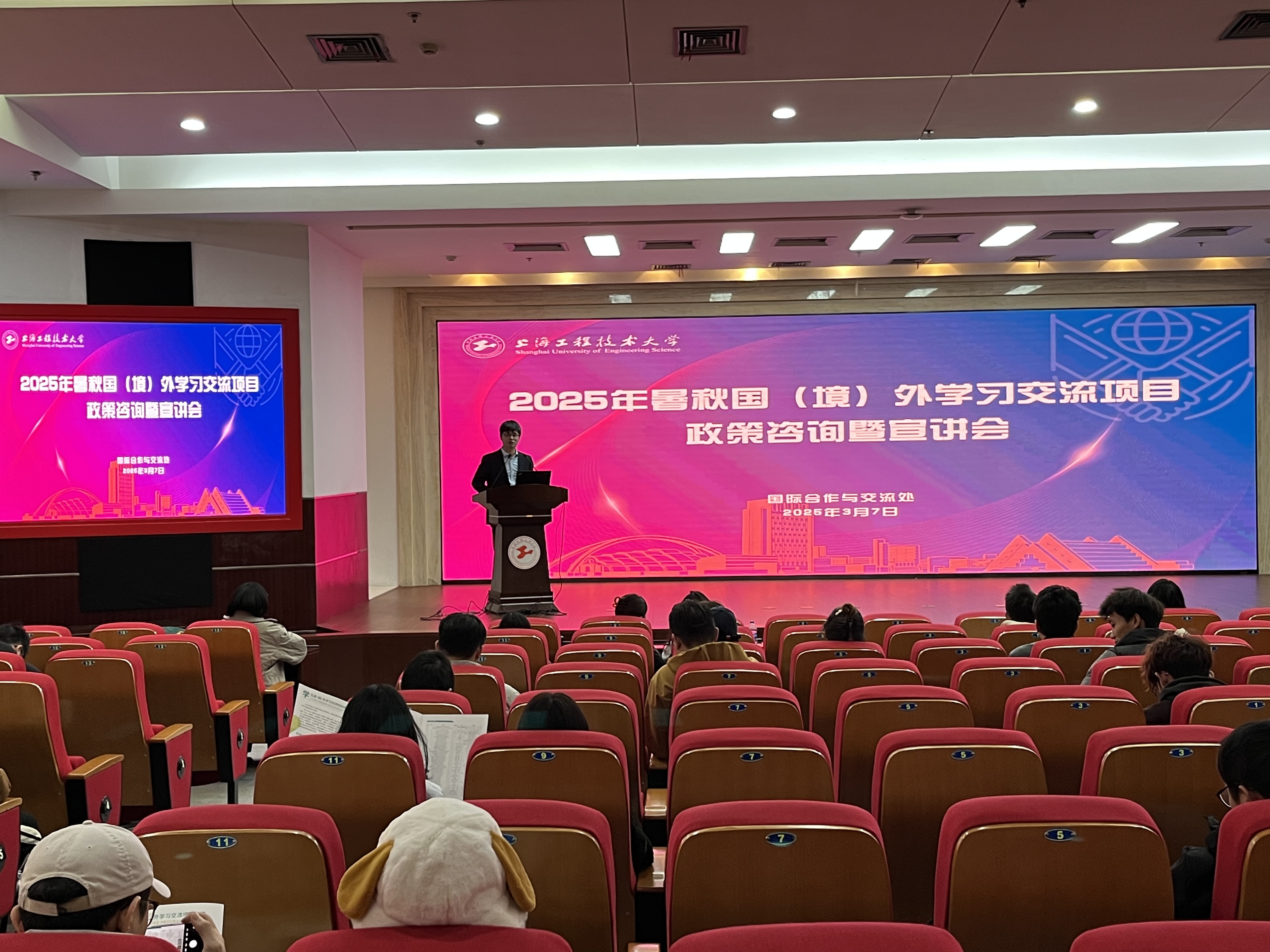 下午,国交处在图文信息中心第二报告厅内举行“2025年暑秋国境外学习交流政策咨询暨宣讲会”。国交处副处长李丛着眼于同学们的个人成长与发展,鼓励大家主动关注并积极投身于多样化的海外学习交流,充分利用学校的丰富资源,培养自己的语言技能与跨文化沟通能力,拓宽国际视野。