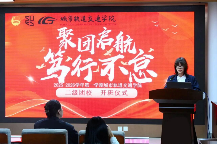 11月14日下午1点40分,城市轨道交通学院2025-2026学年第一学期“聚团启航 笃行不怠”二级团校开班仪式于现代交通工程中心8A613举行。学院团委书记张佳丽、学院团委兼职副书记师蓓悦出席了本次开班仪式,参与本次活动的还有团委、学生会部门负责人、本次二级团校聘任讲师以及本次培训全体学员。本次开班仪式由学院团委组织部负责人张蕊主持。开班仪式在庄严肃穆的国歌中拉开序幕。