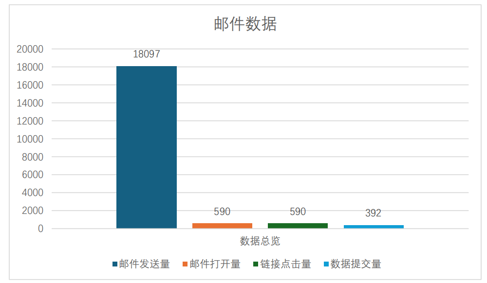 本次钓鱼邮件演练成功发送钓鱼邮件至学生(本科生和研究生)、教职工共计18097封,3.26%的用户(590个)打开了钓鱼邮件,3.26%的用户(590个)点击了钓鱼链接,2.17%的用户(392个)提交了个人账号信息被成功钓鱼。