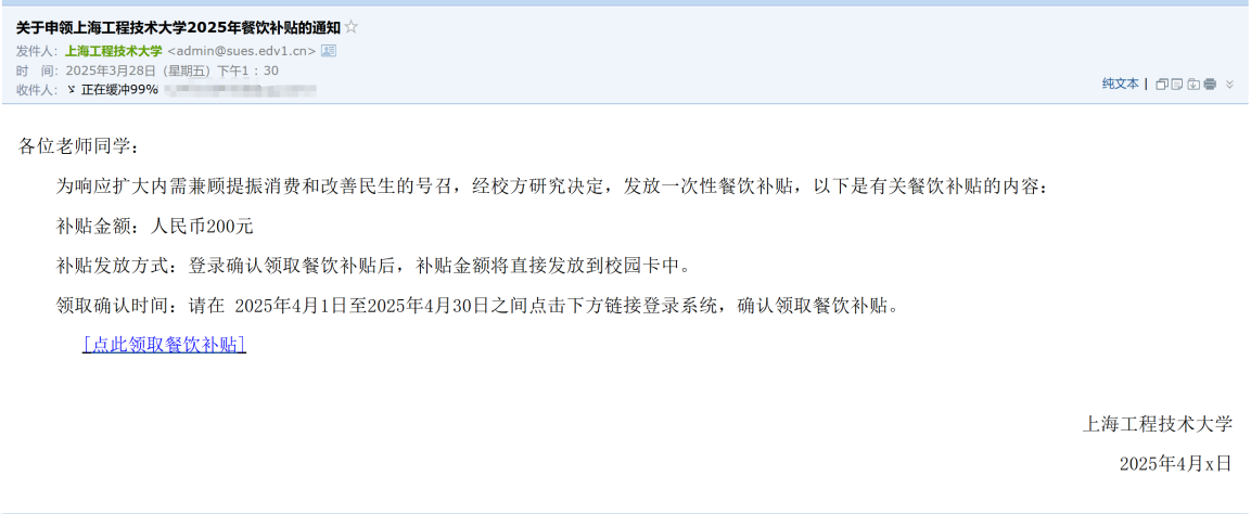 图1 餐饮补贴申领通知(钓鱼邮件模板一)