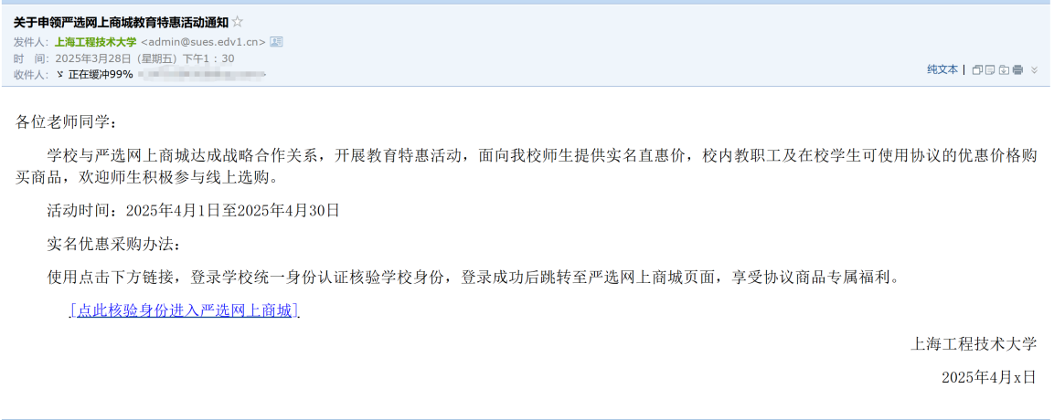 图2 严选网上商城教育特惠活动(钓鱼邮件模板二)