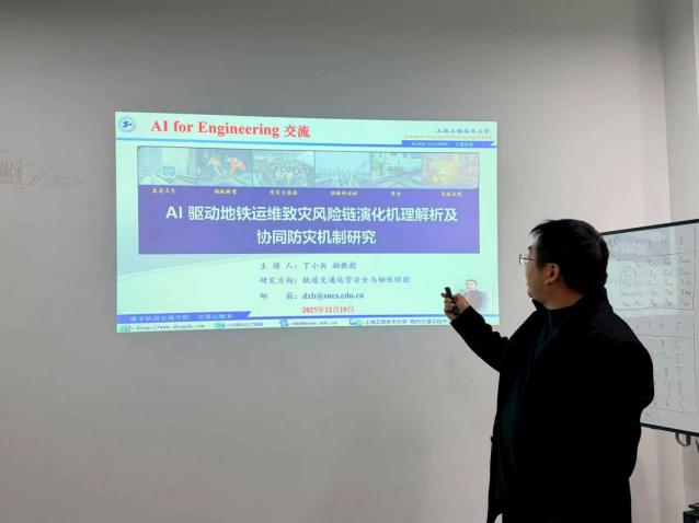 2025年12月10日上午,城市轨道交通学院在交通中心大楼8A412室成功举办了本学期“驻楼导师”系列活动。本次特邀学院知名教授丁小兵担任主讲人,以“地铁运维致灾风险链演化机理解析及协同防灾机制”为核心主题,面向全院研究生及本科生,举办了一场题为“地铁运营安全相关前沿技术分享会”的专题学术活动。活动于上午8:30准时开始,至11:30在热烈的交流氛围中落下帷幕,持续整整三个小时,吸引了众多对城市轨道交通安全领域怀有浓厚兴趣的学子积极参与。
