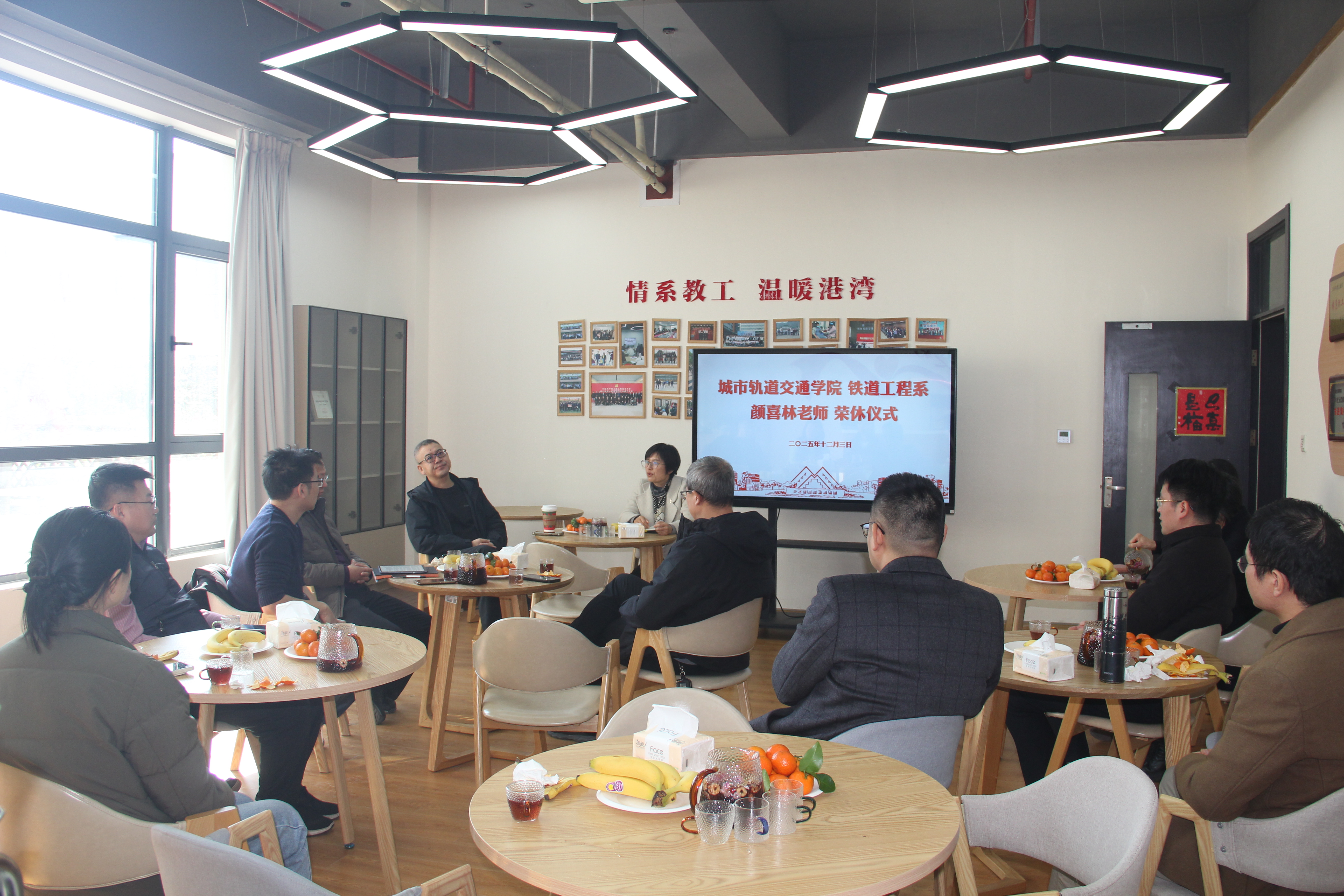 12月3日下午,城市轨道交通学院在现代交通工程中心8A520举行了颜喜林老师荣休仪式,学院领导和教师代表齐聚一堂,共同欢送为教育事业奉献二十载春秋的颜喜林老师。会议由学院工会主席钱鲁斌主持。