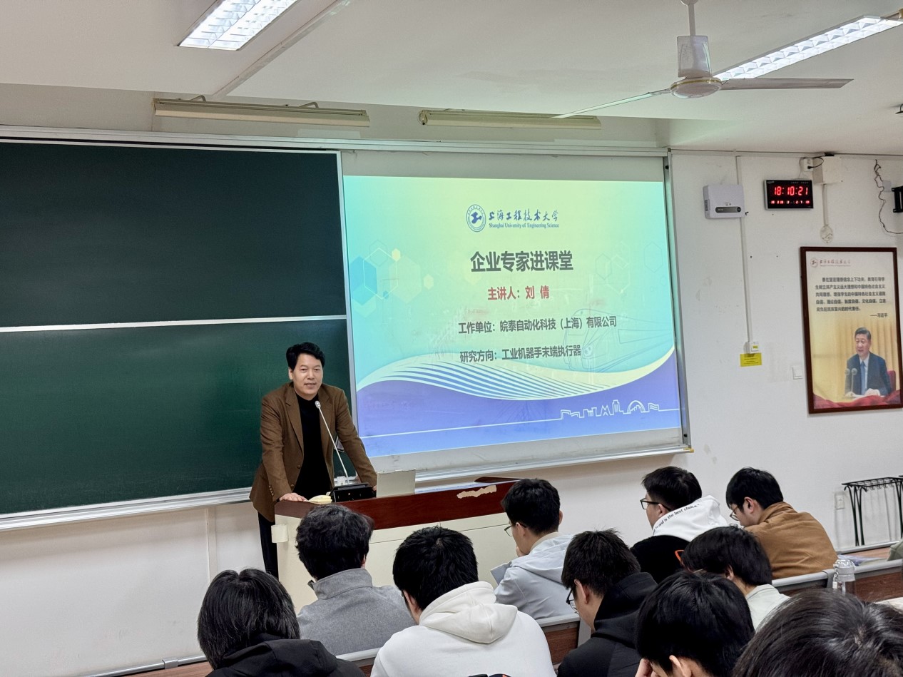 为深化产教融合,将数字化网络化智慧工厂前沿技术与企业实战案例融入课堂教学,2026年3月25日,上海工程技术大学城市轨道交通学院邀请皖泰自动化科技(上海)有限公司总经理刘倩走进《计算机网络与技术》课堂,以《真空技术在数字化网络化智慧工厂的应用场景》为主题,开展了一场精彩的专题讲座。讲座中,刘倩总经理围绕数字化网络化智慧工厂中工业机器人末端执行器的真空技术,由浅入深、层层递进展开系统讲解。他从真空吸附基本原理入手,清晰拆解真空发生器的工作逻辑与气路控制流程,详细讲解真空吸盘选型依据、适配场景与实际应用要点,让学生全面掌握抓取类执行器的设计与应用思路。在此基础上,刘倩总经理进一步深入讲解视觉传感与末端执行器协同作业关键技术,重点介绍了通信协议、实时数据处理算法等。