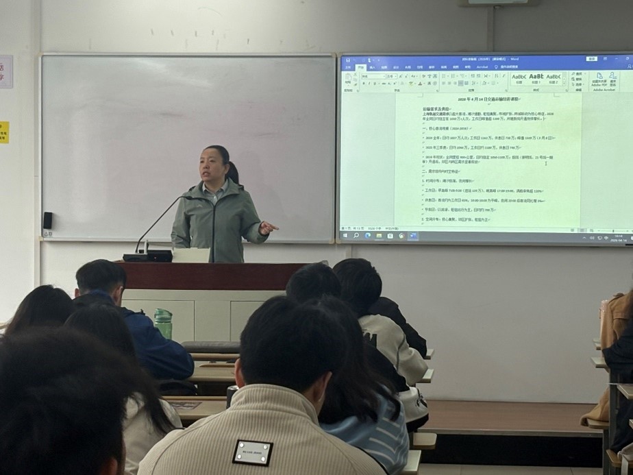 为进一步推进产教融合、协同育人,增强学生对轨道交通运输发展现状的认识,2026年4月14日上午,上海地铁第二运营有限公司的沈亦浮老师受邀走进城市轨道交通学院《交通运输经济》的课堂,围绕上海城市轨道交通客流需求与运输供给的最新进展为同学们进行了专业讲解。